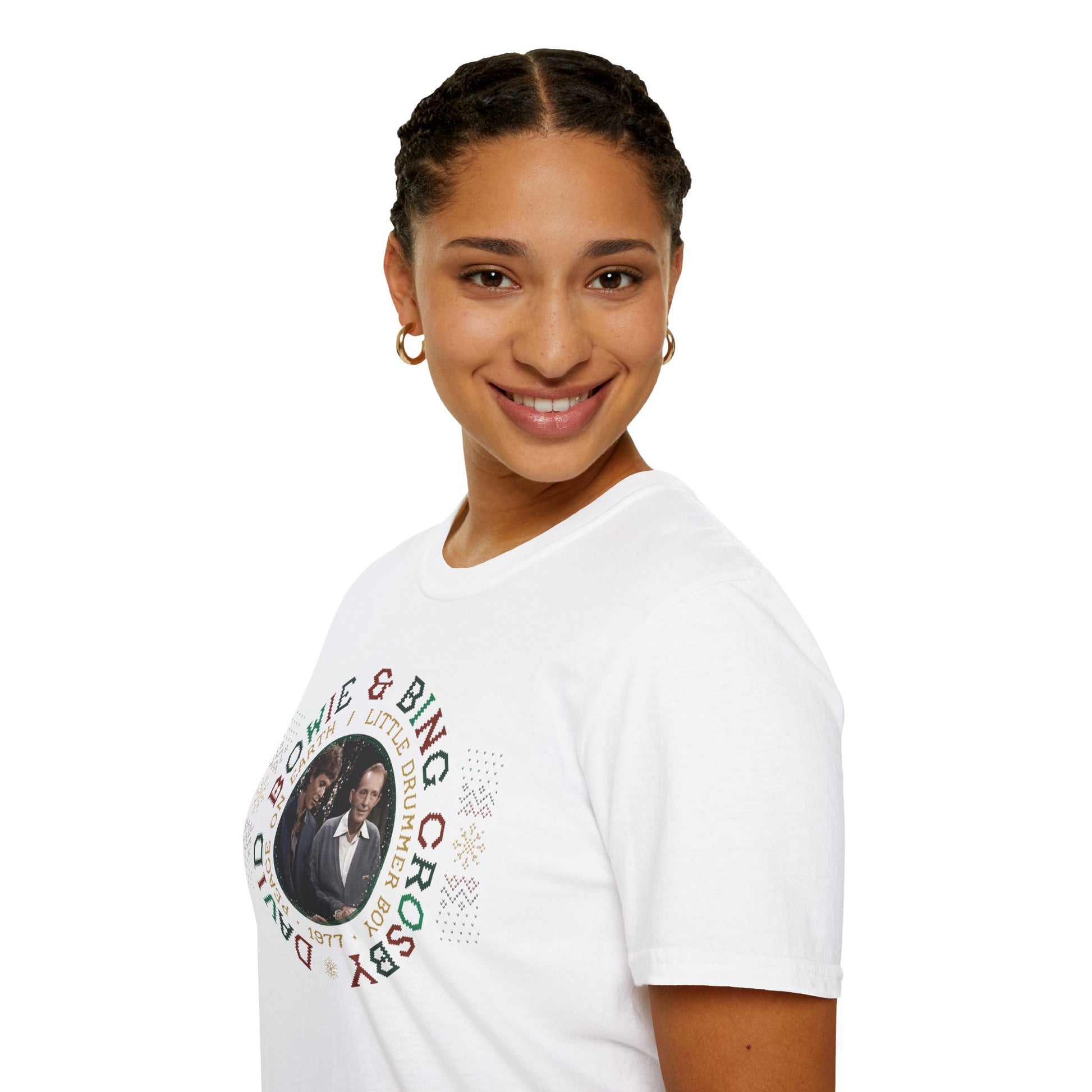 This Bing/Bowie 1977 Holiday Classics Ugly Unisex Softstyle T-Shirt - GREEN or WHITE all-over print crewneck shirt is the perfect example of cool. With quality all-over printing capabilities, you won’t be worried about white lines at the seams.